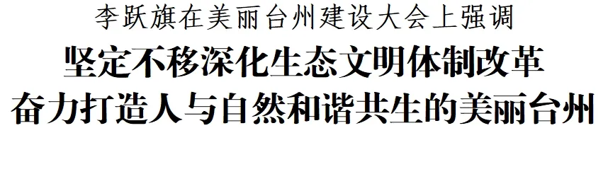 在第二個(gè)全國(guó)生態(tài)日到來(lái)之際,8月15日,美麗臺(tái)州建設(shè)大會(huì)召開(kāi)。市委書(shū)記李躍旗在會(huì)上強(qiáng)調(diào),要認(rèn)真學(xué)習(xí)貫徹黨的二十屆三中全會(huì)精神和習(xí)近平生態(tài)文明思想,全面落實(shí)全省高水平生態(tài)省建設(shè)推進(jìn)會(huì)部署要求,堅(jiān)定不移深化生態(tài)文明體制改革,完善生態(tài)文明基礎(chǔ)體制,健全生態(tài)環(huán)境治理體系,迭代綠色低碳發(fā)展機(jī)制,奮力打造人與自然和諧共生的美麗臺(tái)州。